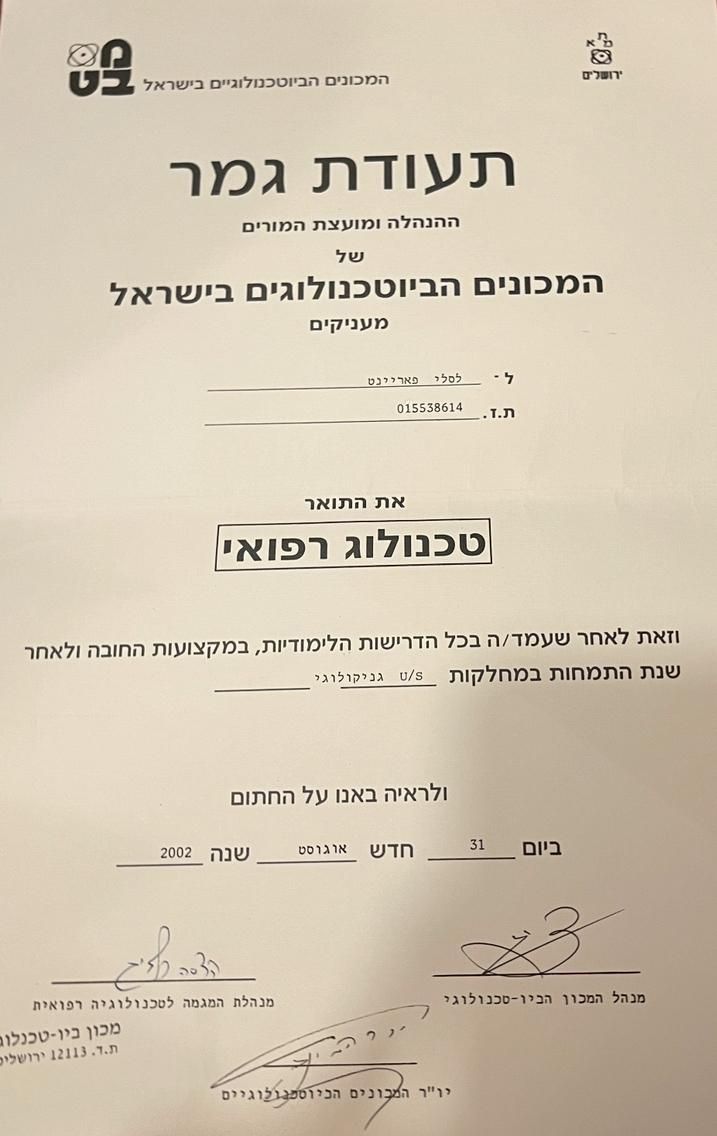 שמי נעמי פארינט, מנהלת מערך טכנאיות אולטרסאונד בקופת חולים. טכנאית אולטרסאונד מוסמכת עם ניסיון של למעלה מ-20 שנה בתחום הדימות הרפואי.